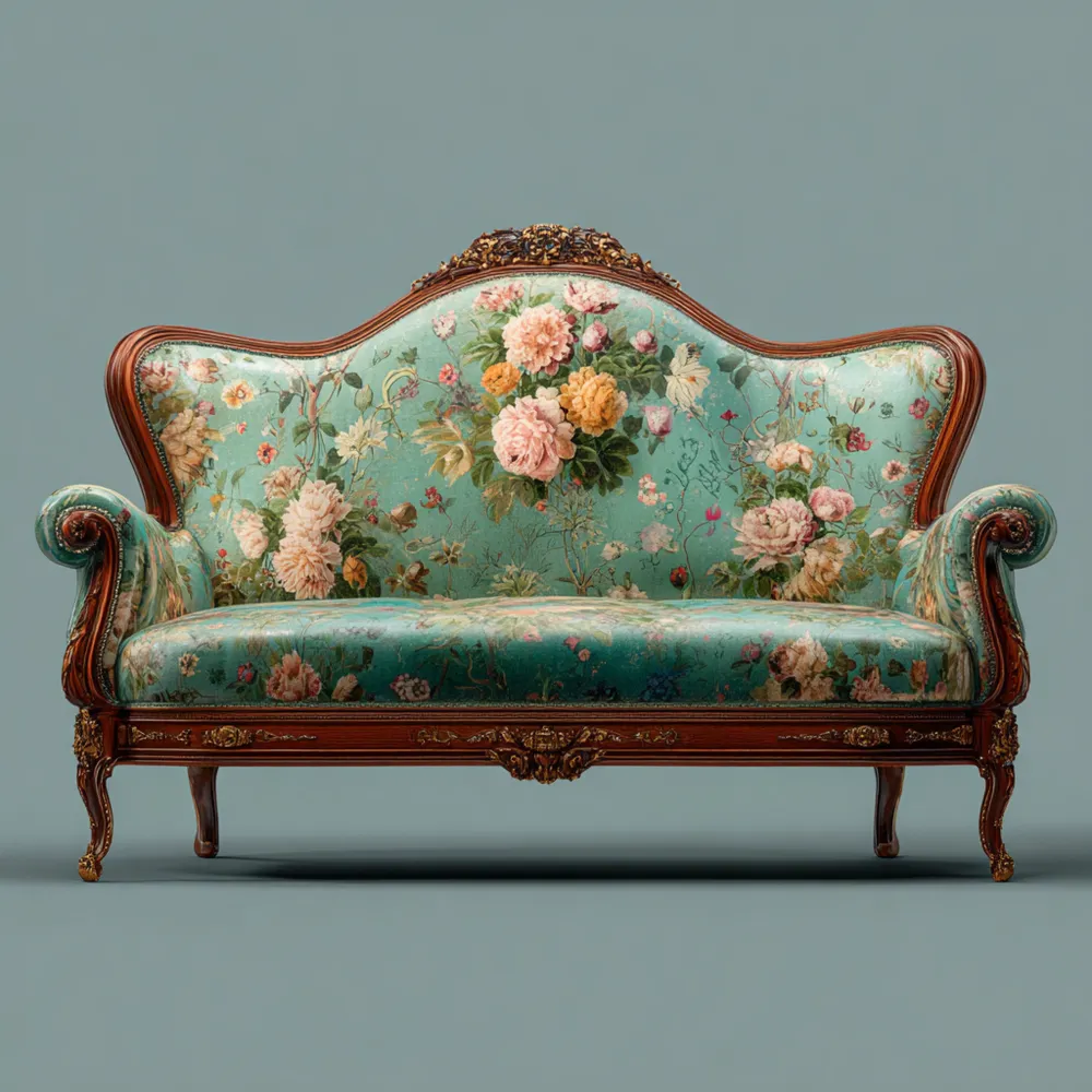 3-Sitzer-Sofa Massivholzrahmen mit floraler Textilpolsterung – Vintage Design 180x75x90 cm