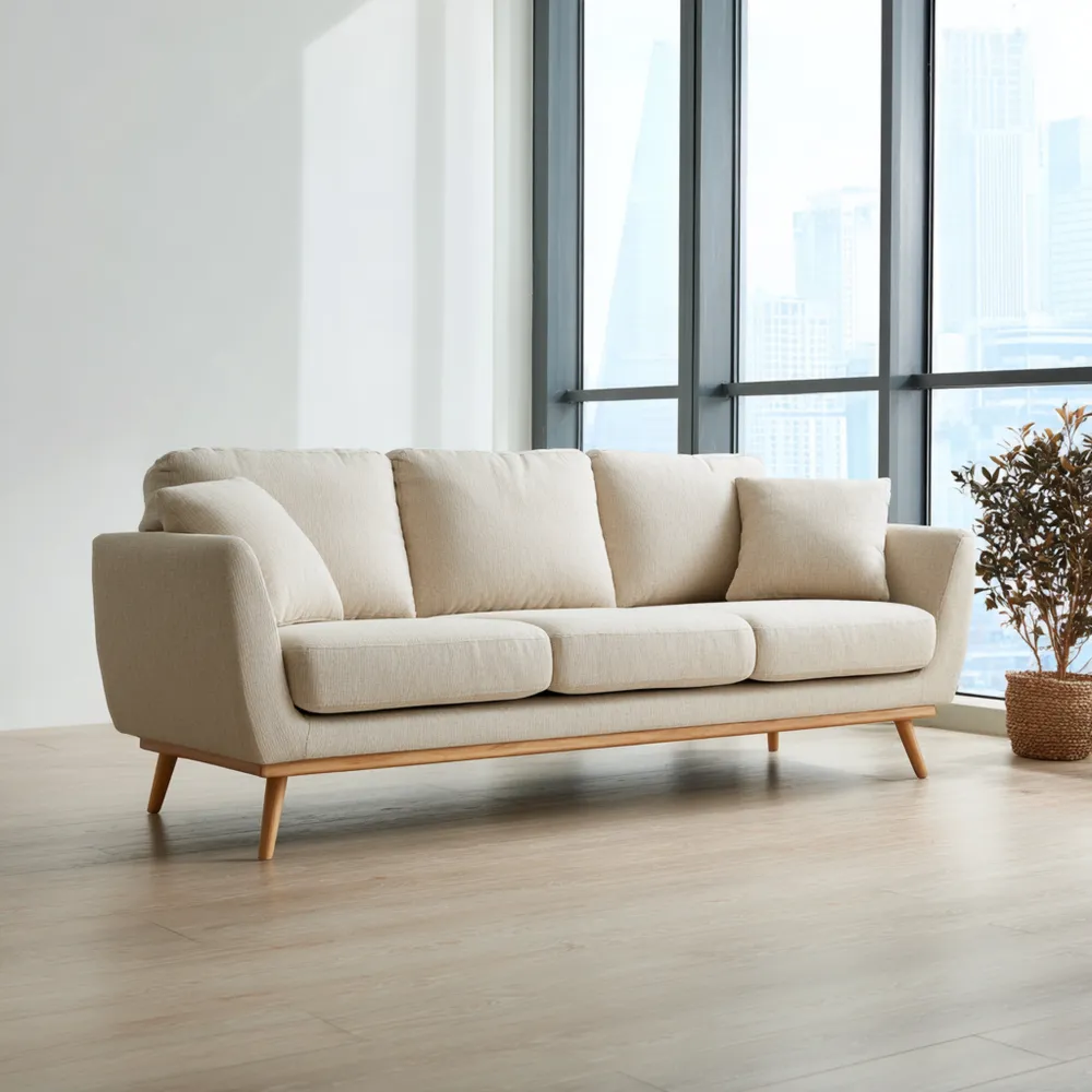3-Sitzer-Sofa Stoffpolster 200x85x90 cm – Creme – Skandinavisches Design